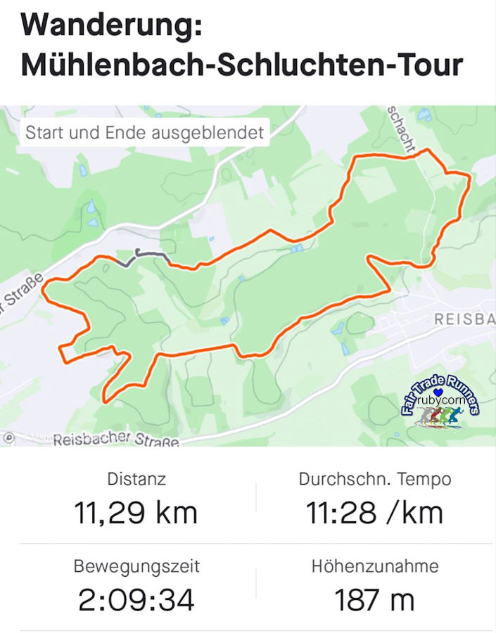 Los geht’s gegenüber der Schutzhütte in den Wald und dann auf einen Wiesenpfad. Vorbei an Feldern und Obstbäumen. Der kurzweilige Weg führt zu der Schlucht des Mühlenbachs, die durch jahrelange Erosion des Bachlaufs im Sandstein entstanden ist. Leider war diese immer noch wegen Astbruch gesperrt (es wird aber ein Alternativweg angeboten). Von dort weiter zum Rotwäldchen mit der kleinen Marienkapelle und dann erreicht man bald wieder die Schutzhütte des Saarwaldvereins, wo man auch einkehren kann.