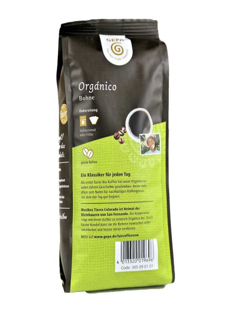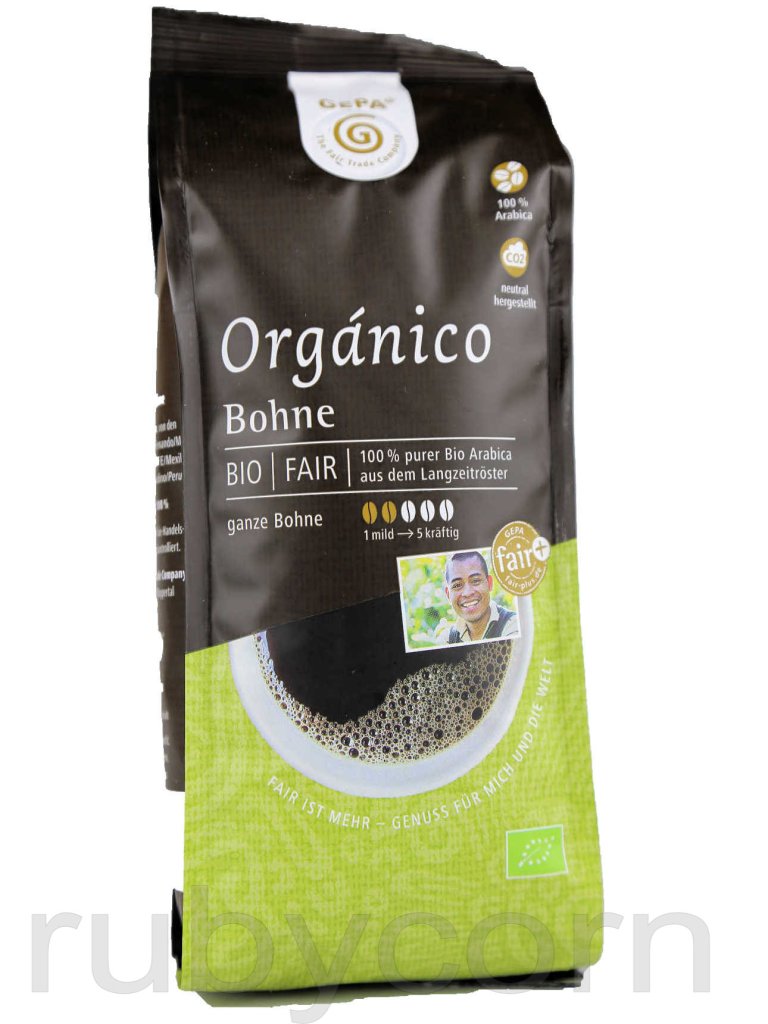 GEPA BIO Fair Trade Kaffee Orgánico, ganze Bohne. 100% Arabica aus Mexiko, Peru und Bolivien. Langzeitgeröstet mit naturmilden Aroma.